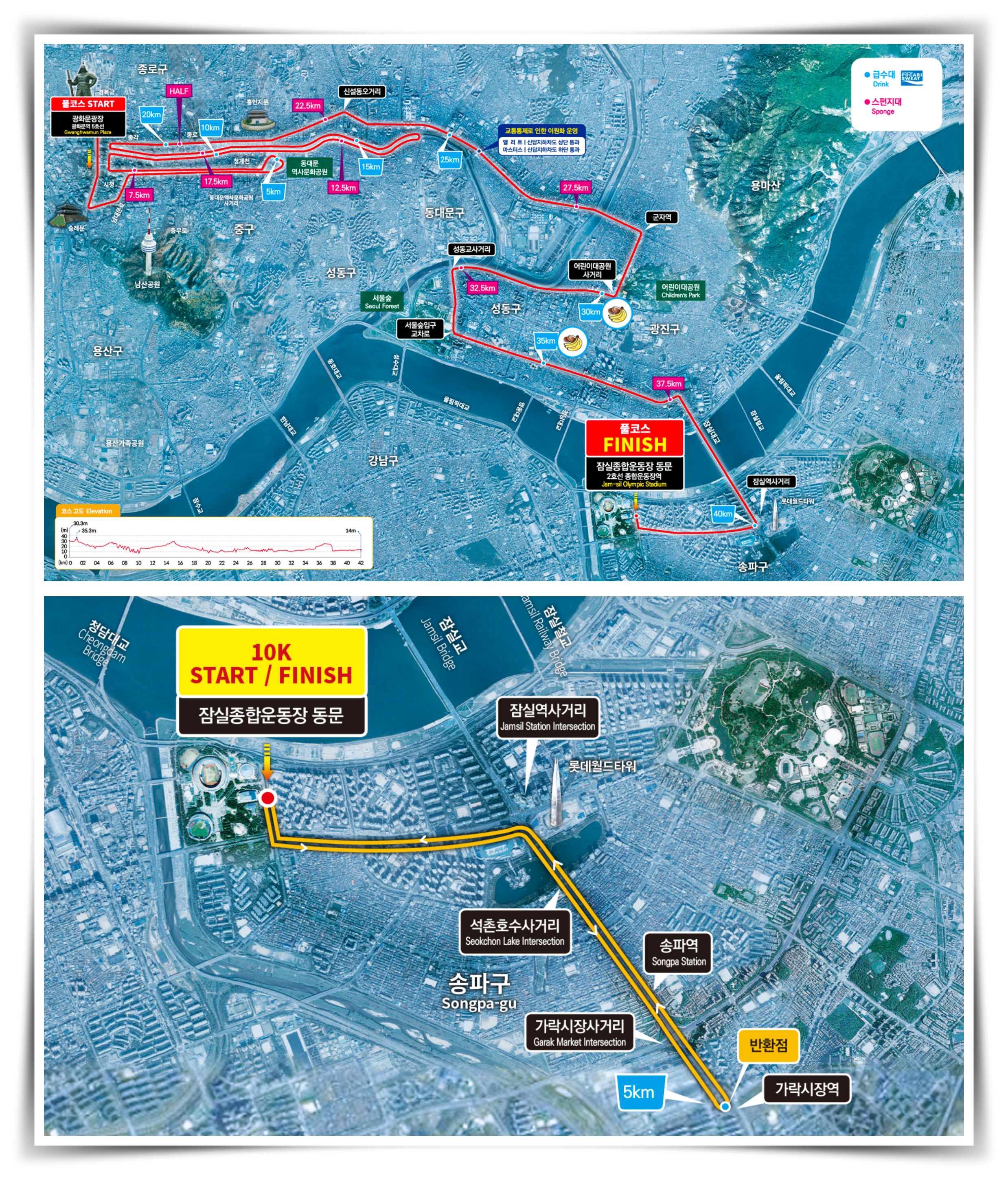 - 집결 장소 : 풀코스 참가자 - 광화문 광장, 10K - 잠실 종합 운동장
