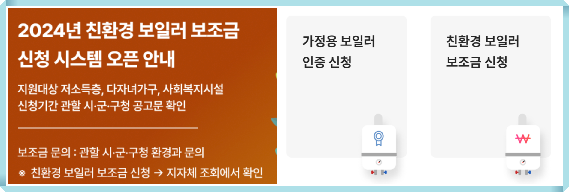 - 신청 기간 : 보일러 설치 지역의 관할 시 / 군 / 구청 보조금 예산 소진 시까지