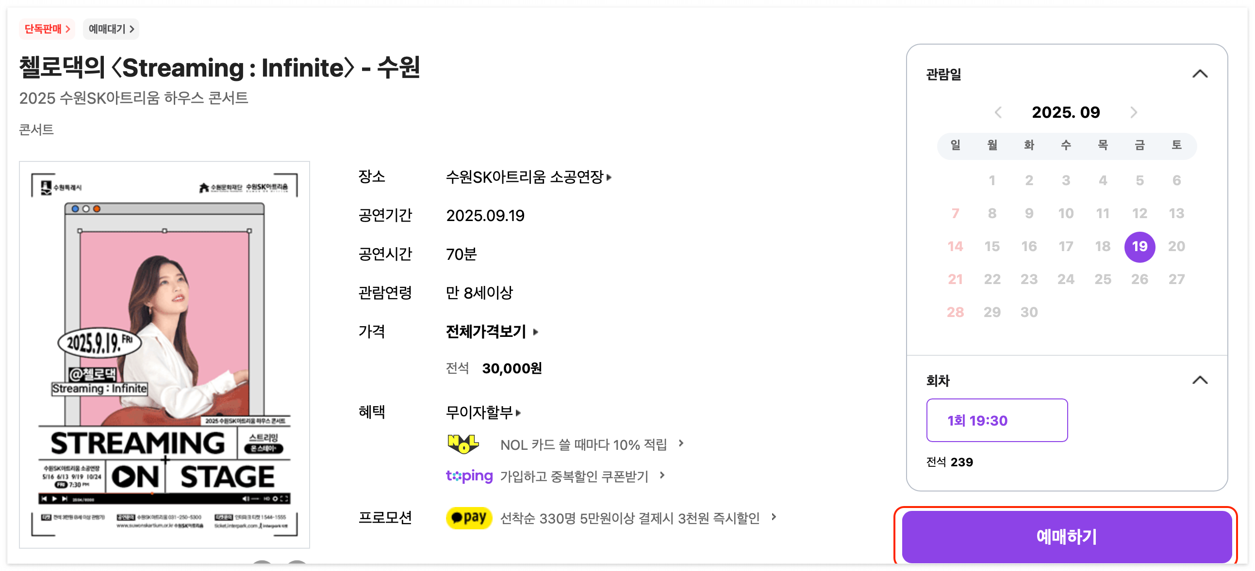 4. 원하는 공연을 날짜 확인 후 발급받은 카드로 결제하기