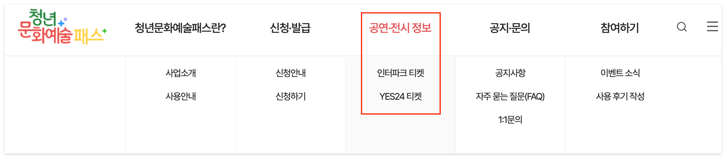 1. 청년문화예술패스 홈페이지 접속