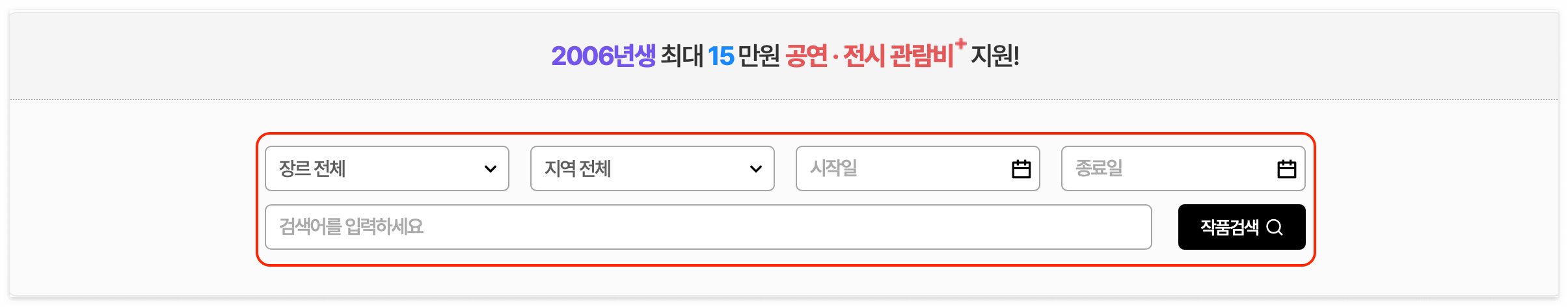 2. 원하는 장르, 지역, 시작일, 종료일, 검색어에 맞게 검색