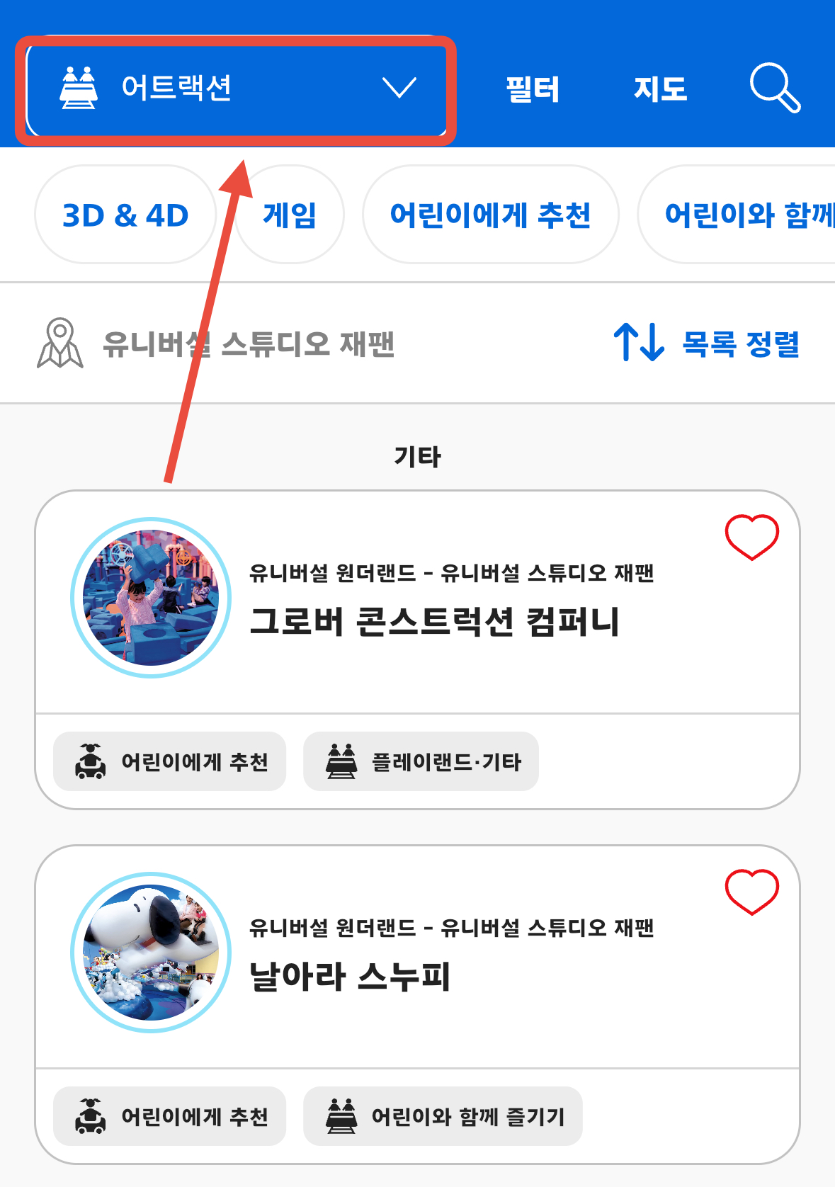 앱에 있는 지도를 확인을 해보면 유니버설스튜디오 동선을 최대 효율로 짜낼수 있습니다.