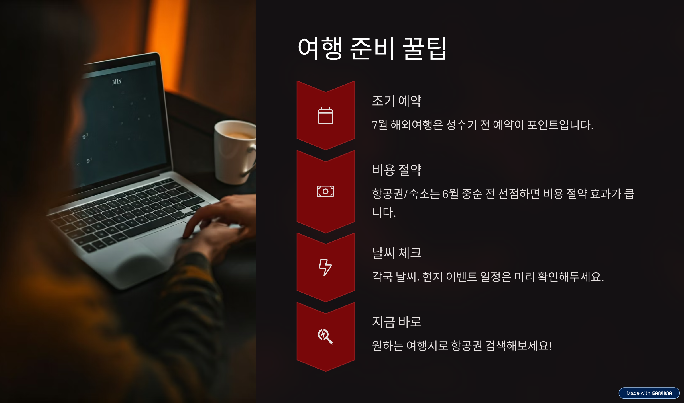 - 항공권/숙소는 6월 중순 전 선점하면 비용 절약 효과 큽니다.