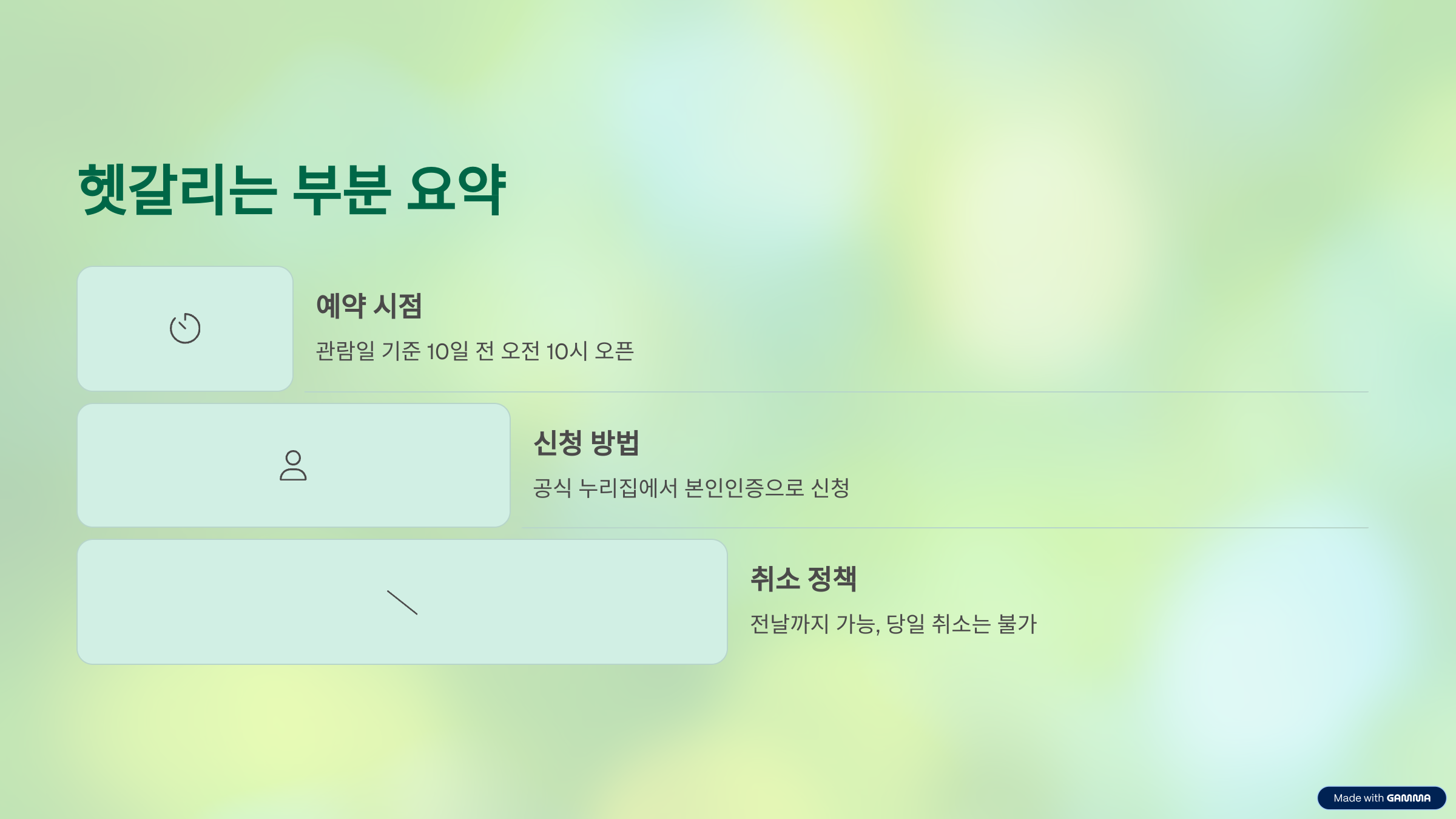 - 예약 취소는 전날까지 가능, 당일 취소는 불가