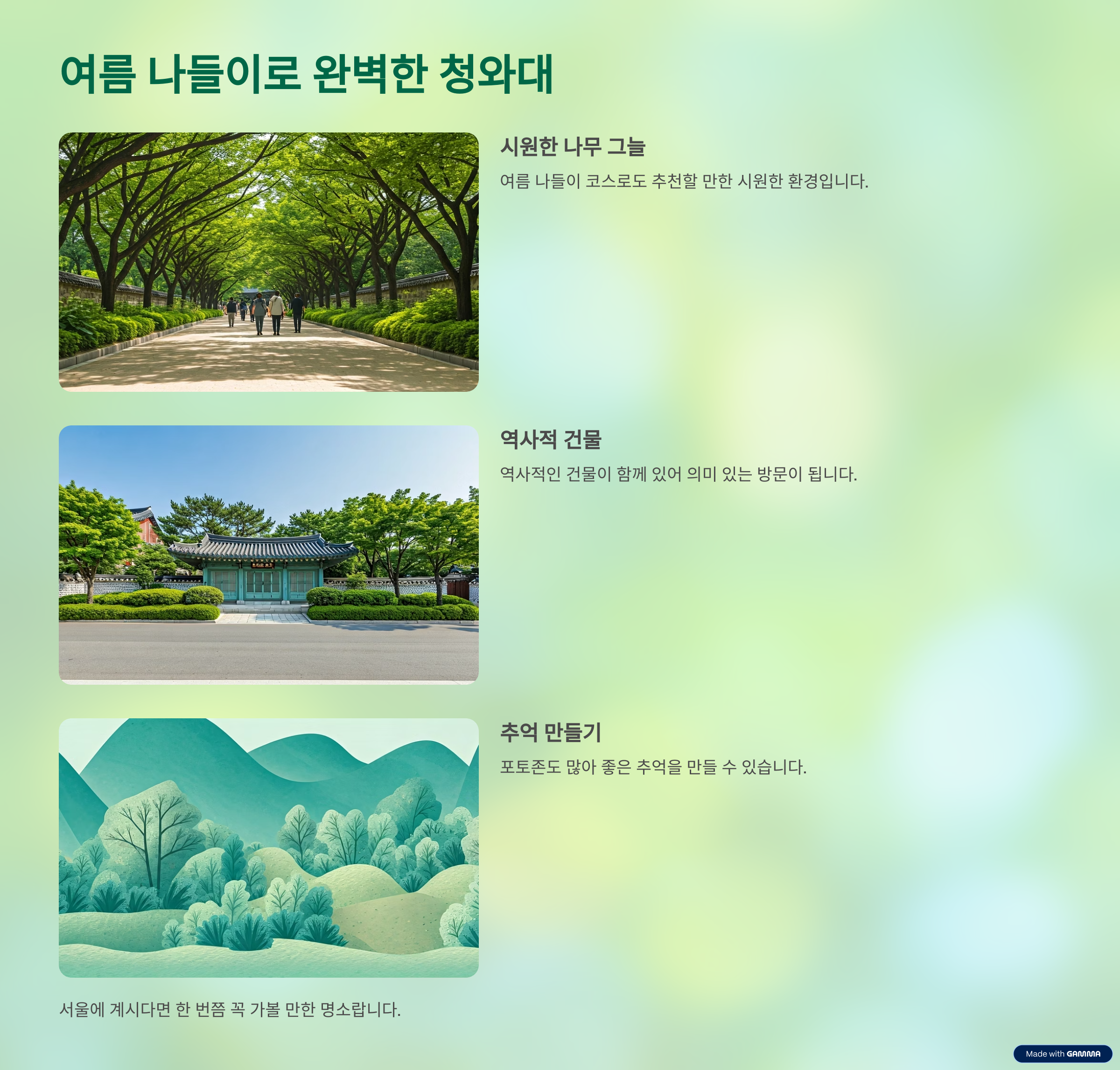 청와대만 보고 돌아가기엔 아쉽다면, 같은 날 인근 카페 거리나 전시 공간도 함께 둘러보면 만족도가 훨씬 높아집니다.