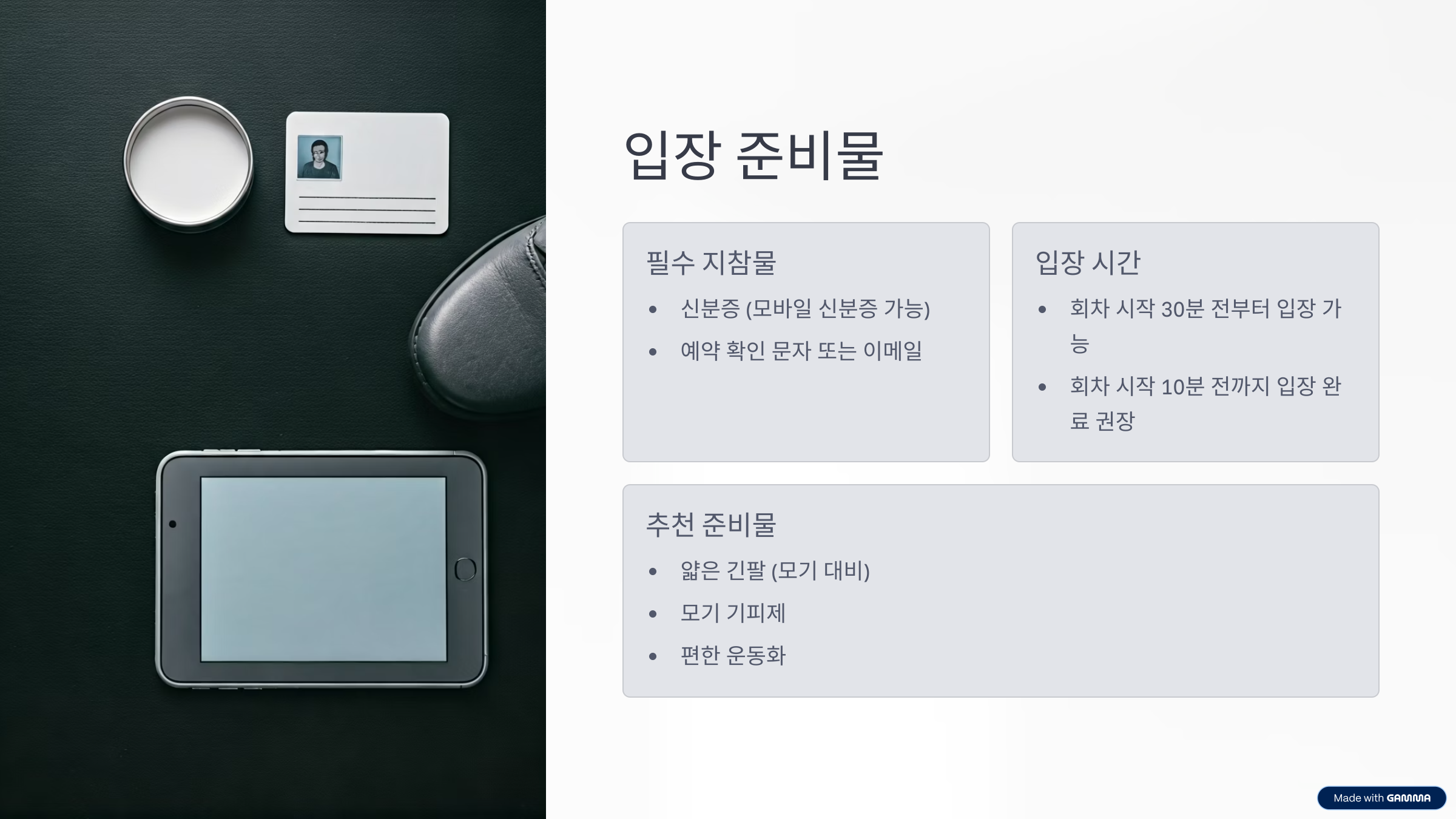 3. 당일 준비물 및 입장 조건