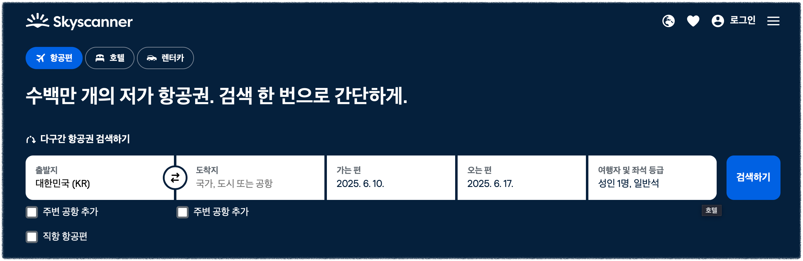 - 스카이스캐너: 실시간 최저가 검색 가능, 그래픽 UI로 날짜별 요금 확인